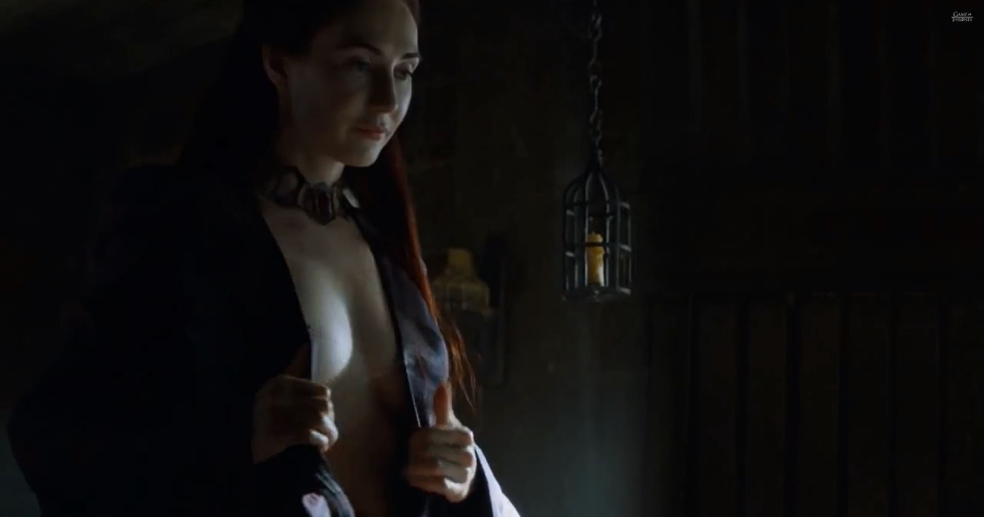 Game of Thrones plays on the ideas of mythological archetypes. In this episode, we see jokes about Jaime Lannister (Nikolaj Coster-Waldau) attempting to rescue his “niece” as a ploy to have songs written about him. While it seems unlikely Jaime feels that way, the only approval he seeks is from his sister/lover Cersei (Lena Headey); a self-reflexive understanding on the nature of storytelling. This is further played into during Snow’s adventures when he is tempted by Melisandre (Carice Van Houten). While he resists her, Snow does allow himself to be tempted for a moment. As Melisandre unveils her breasts and stomach, he cannot resist touching her exposed skin and seems pained as he turns her away, though it is not necessarily her body he longs for. Snow has loved before and has been tempted once again, which makes it seems likely that his path will similarly be set by a woman — for better or for worse.