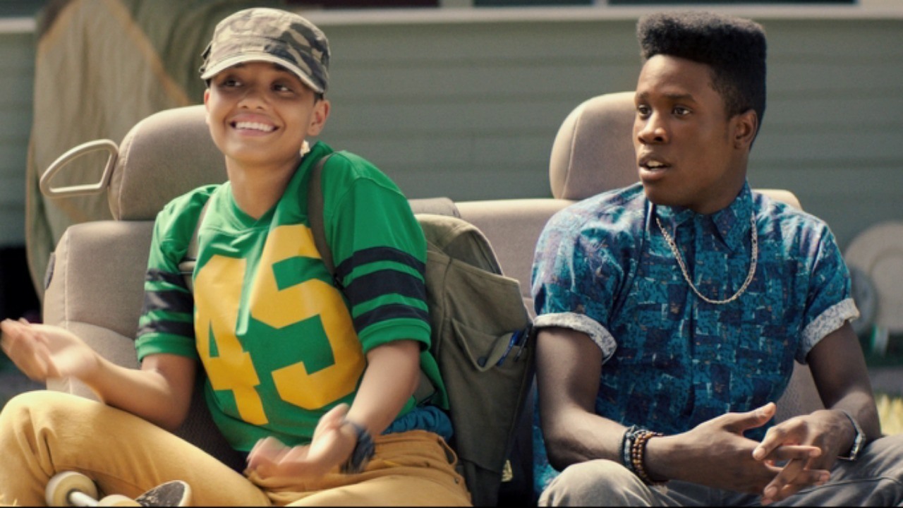 Malcolm (a spectacular turn from relative newcomer Shameik Moore) along with his friends Jib (Tony Revolori) and Diggy (Kiersey Clemons) are geeks. Obsessed with 90’s hip hop culture, skateboarding and their punk band, the group’s penchant for good grades and thrift-shop clothes make them a target for bullying at their “underfunded” public school. A chance encounter with corner drug dealer Dom (A$AP Rocky a.k.a Rakim Mayers) leaves Malcolm in possession of several bags of dope (MDMA) and in jeopardy of losing his chance to get into Harvard. Confronted with the choice to either sell the drugs or face unnamed consequences (death is made very clear), the geeks must use their nefarious connections and adept intellects to return their lives to normalcy (while connecting several unusual plot points along the way).