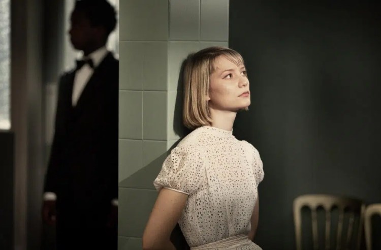 Mia Wasikowska appears in a dreamlike state to Simon, emerging in slow motion through a window on the train. Once Simon begins interacting with Hannah, she shatters the dream image he constructed for her, reminding him (and ourselves) that she is a human with her own problems.