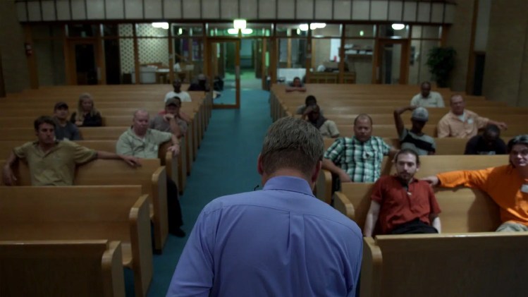 It would be difficult to write aย character like Jay Reinke into a script, as his intricacies and flaws would seem unbelievable presented as fiction. Heโs at opposition with his congregation, and his whole town, as everybody wants the overnighters to leave. Reinke sees this fear as simple xenophobia that he hopes toย alleviate through love and understanding. Heโs right to a certain extent, but he’s also equally wrong. There has been an uptick in crime and the number of sex offenders living in the town. Throughout the film, one may feelย conflicted about Reinke’sย methods, which makes the film so fascinating. One canโt help but admire and hope for Reinke’s crusade of humility and brotherhood to succeed, even when he goes about it in so many wrong ways. He has so much love and support to give, and he gives it honestly. He is trying to do the right thing and help people, yet he ends up blowing his life and reputation due to his combination of naivety and obliviousness. At one point, he accurately sums himself up by remarking, โI donโt say no very well, so itโs easier to say yes and live with the consequences.โ A reporter confronts Reinke about the several sex offenders living in the church, including one living in his home. Reinke keeps on walking, evading the questions and ignoring the reporter before sprinting away. Heโs so tragically and humanly flawed in his quest to do the right thing… Shakespeare couldnโt have come up with this guy.