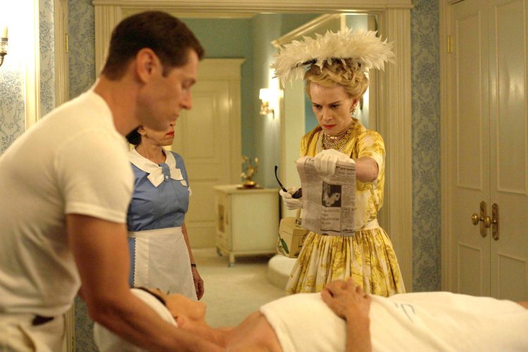 In fact, Feud seems to be driven as much by male insecurity and fear of failure as it does anything to do with the women. Hopper reminds Aldrich that he’s no John Ford, a lasting director with scope and clout who can manage his starlets (great press included). Warner may seem the picture of inflated ego, but for all his talk, he can’t resist bedding down the “washed up” Crawford, or chasing Hitchcock’s Psycho at the box office. And of course, there’s Aldrich’s wife, privy to his multiple affairs, who says it plainly: “Not even you can satisfy two women at once.”