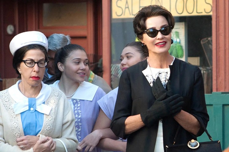 And maybe it’s why Davis doesn’t mention her youngest daughter until “Mommie Dearest,” a daughter who’s been institutionalized in Maine, and whom she seems to feel she’s abandoned. Or maybe it’s why when her other daughter B.D. (Kiernan Shipka) proves to be a truly bad actress, she makes sure Aldrich plans to credit her as B.D. Merrill — her adoptive father’s last name and not her own.