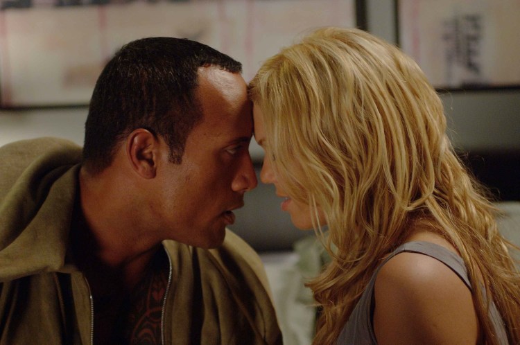 The breakdown in privacy that the Patriot Act ushered in is reflected brilliantly in Southland Tales. Every one of its characters is either a celebrity, performance artist, politician or all three. It feels that most of their fame was bestowed upon them through the virtue of merely existing, that being caught by both Kelly’s camera and the Big Brother eye of USIDent has all given them their roles and statuses. Boxer Santaros, played by Dwayne Johnson, starts the film with his memory entirely wiped and yet he can’t stop performing. He jitters, feeling around for the right line in regular conversation and slips into a character from his screenplay, Jericho Kane. In a scene where Officer Bart Bookman foils the recording of a faked murder by making it a very real one (all while quoting Philip K. Dick), Johnson portrays Boxer as falling back and forth between being himself and Jericho Kane. He personifies the broken walls between self and output as he tries to act out a new medium between the two. Even with his mind wiped, Boxer Santaros is still painfully aware of an audience.