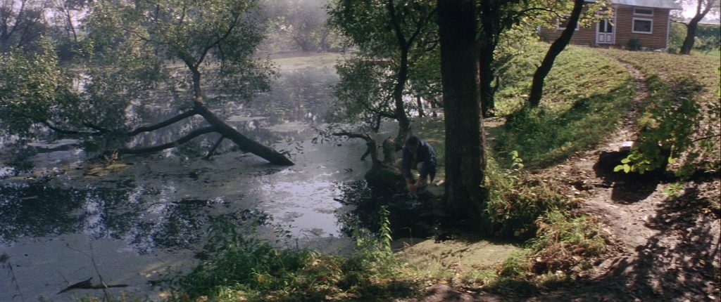 Sure enough, Kris acquiesces to the baffling phenomenon, as his deceased wife Hari (Natalya Bondarchuk) appears to him one evening. He registers the peculiarity of her depiction, responding in a disheveled sweat of panic, and instinctively attempts to get rid of this alien imposter. But when she returns, after he had launched her into the void of space, he is besieged by the competing forces of temptation (a chance to again be with his dear departed) and his well-honed lucidity (he knows what “she” is). Tarkovsky firmly establishes the uncanny scenario of Solaris, so it is now when he diverts interest away from the conventions of the genre and begins to probe the film’s more resonant, empirical repercussions.