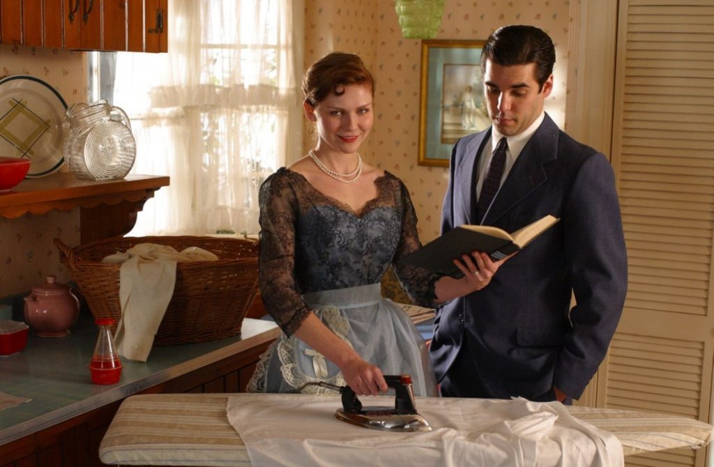After the massive undertaking that was Spider-Man, and the fanboy drubbing Dunst took in its wake, she sought to rectify that with three features in 2003. Her major release was in the female-focused drama Mona Lisa Smile, about a group of young women growing up in a 1950s women-only college under the watchful eye of a progressive mentor played by Julia Roberts. Whereas Dunst personified the bright and bubbly blonde, Mona Lisa Smile saw her embrace a villainous side. Ditching blonde locks in favor of a brunette color, her Betty Warren is an entitled rich girl trying to embody the perfect 1950s housewife. Betty marked a departure from Dunst as “the girl” to Dunst as “the wife.” Mona Lisa Smile represented a return to the female-focused films of All I Wanna Do and The Virgin Suicides, albeit without the benefit of a female screenwriter or director.