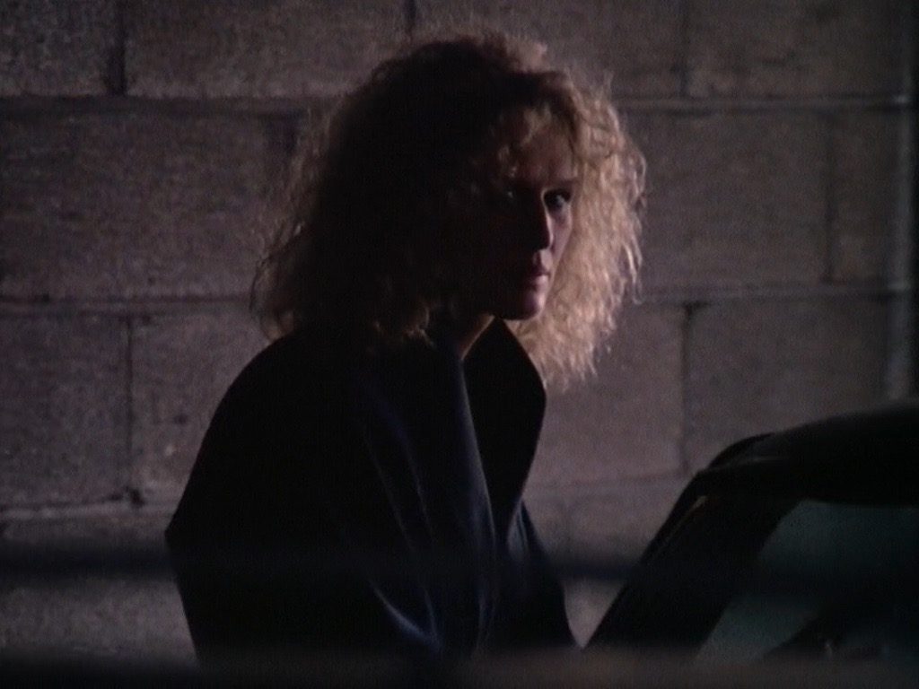 Through Alex, an extensive number of irrational anxieties are thus expressed in an inflammatory manner: the destructive power of desire outside marriage, the irrationality of feminists, the violence that the mentally ill can perpetrate and the burden of their possible suicidal tendencies for the people around them. Her entire being signals instability and danger. Her monochromatic black or white wardrobe suggests her mood swings, from childish giddiness to unrestrained rage. The blondness of her hair is gorgeous and icy. Contrasting with the brunettes of film noir, it will come to define the 90s version of the femme fatale, from Sharon Stone in 1992’s Basic Instinct to Rebecca Romijn in Brian De Palma’s riff on the stereotype 10 years later, Femme Fatale. Alex’s curls are beautiful but messy — Pauline Kael called her a “Medusa” and her stare turns Dan into anxiety personified. In a harrowing moment of despair, Lyne shows Alex sitting on the floor of her apartment beside a lamp that she switches on and off repeatedly, staring into space while listening to the aria from M. Butterfly (an opera about a character who yearns for transformation). The white t-shirt she wears outlines a shape around her body that recalls the Venus de Milo, symbol of beauty, but a crease near her stomach creates the fleeting but unavoidable illusion of a straightjacket. At once irresistible and insane, Alex is every 1990s man’s nightmare.