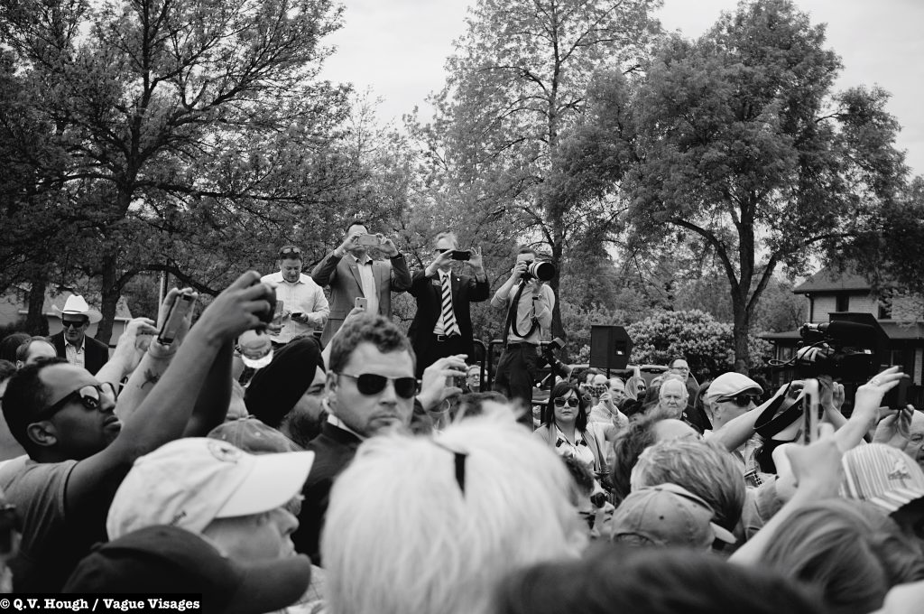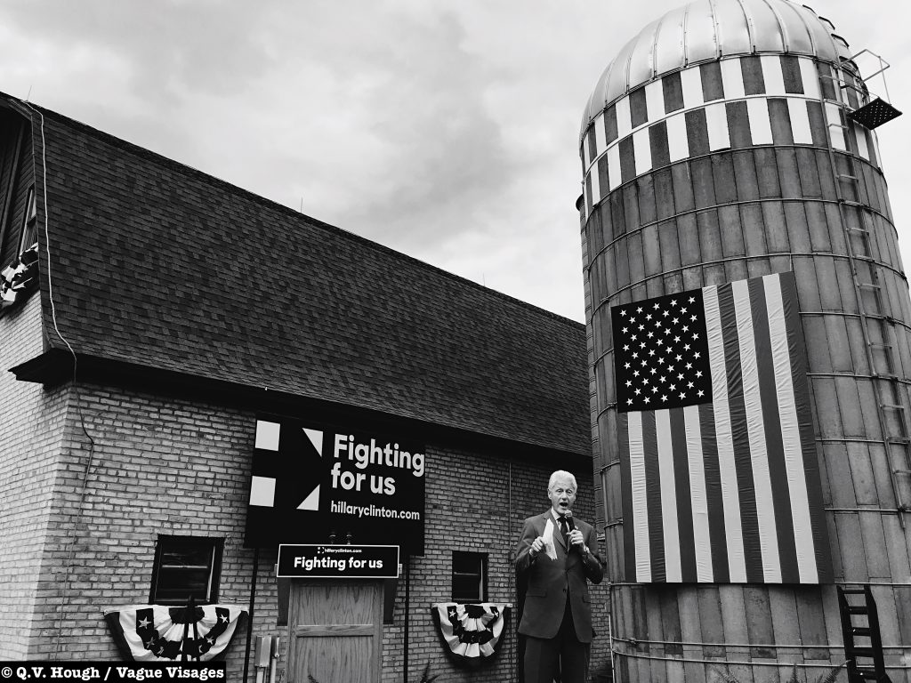 On May 20, 2016, the 42nd President of the United States made a stop in Fargo to campaign for his wife/presidential candidate Hillary Clinton. Bill Clinton spoke at Rheault Farm, with the local security being more “Fargo Nice” than overwhelming. Outside the gate, people sweat and smile. Many attendees inquire about the Fujifilm X100 hanging around my neck, at least when I’m not wearing my Skullcandy Skullcrushers (Future and podcasts).