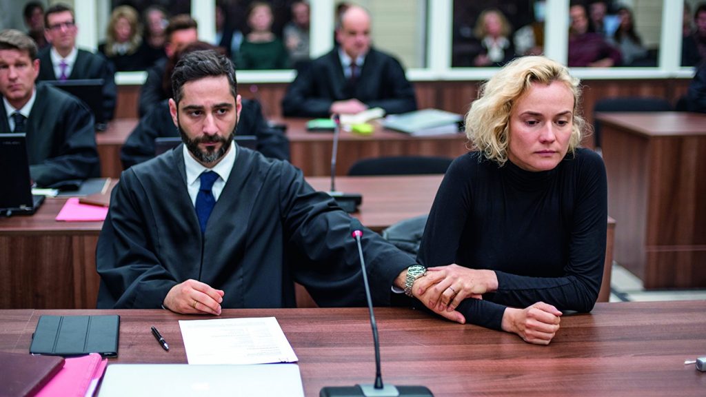 One could counter that the true story is somehow the evolution of Katja’s pain, even though that isn’t terribly well-defined beyond the societal prejudices around her. In the wake of the murders, her husband is initially suspected of criminal activities. During the trial, the fact that Katja took drugs to cope in the aftermath is used in an attempt to discredit her testimony. And, of course, the fact that the court ultimately lets the killers go free suggests how much worth they place on the lives of non-white people. That all of this is channeled through the struggle of a white woman is supremely odd.