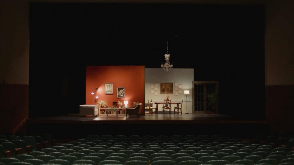 Partheon is split into two halves, divided almost exactly down the middle of the 14-minute runtime. In the first section, an unnamed couple (played by Lily Baldwin and Thiago Martins) engage in playful foreplay, which escalates into something increasingly aggressive. At the height of their passion, the man playfully chokes the woman, who responds by biting down hard on his arm. He recoils in pain, and angrily begins to make his exit. She is filled with remorse and grabs onto him in an attempt to keep him from leaving, but he fights her off. In a last ditch effort to garner his sympathies, she collapses onto the ground and mimes a seizure. The sequence plays out with minimal dialogue, with Baldwin remaining entirely silent in order to communicate entirely with her body, and Martins only delivering a few lines. As such, the argument plays out less like a conventional scene than an expressionistic dance piece — the design of the apartment, with its bare white walls and wood-panelled floors, even resembles a theatre stage. The camera tracks their motions in a series of wide two-shots, capturing their body movements with striking agility and spontaneity. In this short scene, Mosley skilfully paints a compacted portrait of a relationship marred by a failure of communication. Baldwin’s character (officially credited as The Model) is willing to give herself over entirely to her lover and longs to be engaged in open, mutual communication, but he (officially credited as The Lover) refuses to engage with her on the level she desires. The major problem afflicting this relationship is revealed to be one of presence: Baldwin uses her body to express her feelings, but feels that her expressions of love aren’t being returned.