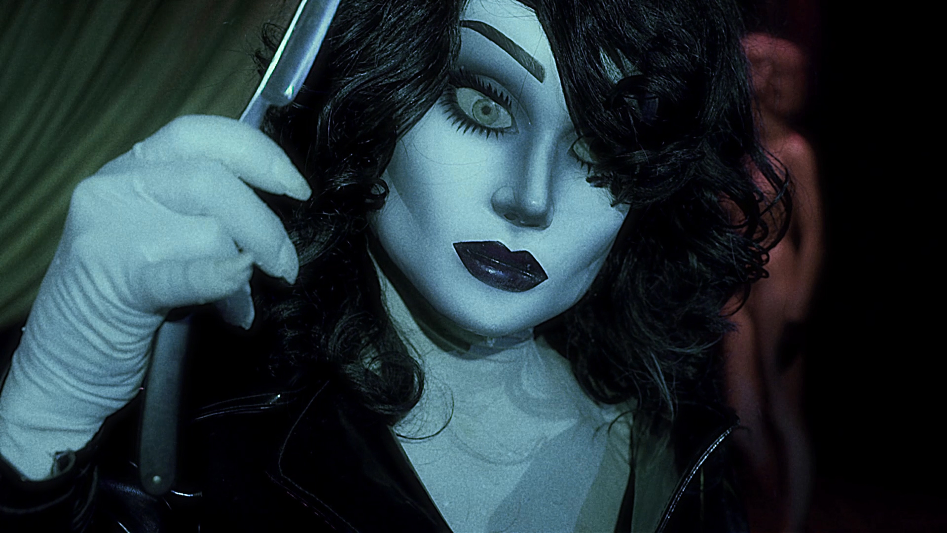 Crystal Eyes wears the giallo genre as camp couture, adorned with references ranging from a bathroom murder ร la Dario Argento’sย Deep Red (1975) to The Bird with the Crystal Plumageโs (1970) straight razor, leather raincoat and… bird, all of which contribute to the filmโs playful aesthetic of self-awareness and pay homage to the genreโs preoccupations with beauty, violence, contemporary style and outlandish invention. For the uninitiated, Crystal Eyes could be seen as purely ironic, but the film speaks at the level of pure reappropriation, and as such there is a level of sincerity in its world of insincerity, where image comes before all other dimensions. For example, the filmโs slasher, La Silueta — a drag subversion of Halloweenโs (1978) The Shape (Michael Myers) — initially moves in a series of exaggerated poses, teleporting silently towards its prey whenever out of the audienceโs eye. This has its use as a neat inhuman trait to the murderous doll, but I feel this speaks to the sensation of being seen, of becoming an object on display. Being seen, in this instance, is to be frozen and reduced to a series of gestures and angles. Reproductions — magazine covers, a home movie, memories — of Alexis Carpenterโs image litter Crystal Eyes, yet lead no closer to her personal truths. This use of aesthetic to communicate deeper values is the core prerogative of gialli, namely, style as substance.