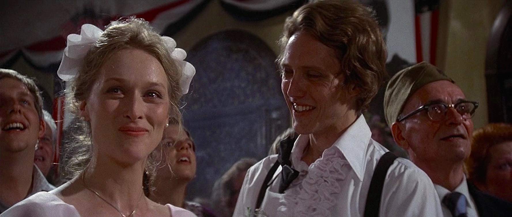 In Vietnam, Mike, Steven and Nick find themselves in a Viet Cong hell hole, submerged in a squalid river pit where the torturous conditions have shaken Steven, in particular, to his core, leading to a near-complete mental fracture. While Nick glides through the horror in a state of stunned bewilderment, Mikeโs cruel pragmaticism manifests itself in two forms: in his initial insistence to leave the debilitated Steven behind if it jeopardizes their own safety; and in his reinforcement of Nickโs persistence, encouraging his friend in gut-wrenching defiance. Though it is evident throughout The Deer Hunter, one sees in the filmโs notorious Russian roulette sequence a prime reason why the masculine depiction is indeed so potent. The performances are astounding, and they achieve an excruciating physiological frenzy as the actors, especially De Niro, grimace through tears and strained laughter, expressing simmering rage and a powerful sense of devotion, desperation and dependency, upholding in their emotional fury the importance of their camaraderie. Despite intermittent fabrication (games of Russian roulette were rare to nonexistent during Vietnam), the Vietnam scenes are conspicuously effective due to a visceral, vitalized validity, which is rather ironic given screenwriter Deric Washburnโs admission to doing minimal research, mainly watching television coverage of the war. On location in Thailand, wading amongst the rats and insects infesting the River Kwai, the actors performed their own stunts and imbued The Deer Hunter with an authenticity likewise applied in its American-set passages: see, too, the casting of amateur Chuck Aspegren, a steelworker foreman discovered by De Niro and Cimino while scouting locations; De Niroโs insistence on using a live round when he puts a gun to the head of Cazaleโs rightfully terrified Stan; and, most ambitiously, the prolonged wedding sequence, filmed at the St. Theodosius Russian Orthodox Cathedral in Cleveland, a spontaneous, grueling, very real set piece lasting some 50 minutes.ย