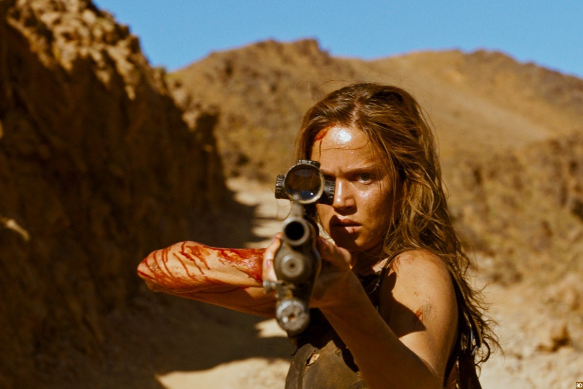 Crucially, the rape itself isn’t the focal point of the story. Fargeat shoots it from Lutz’s perspective, barely giving the act a minute of screen time. She’s much more interested in her Final Girl’s redemption. The female gaze is strong here, from Lutz’s curve-hugging but functional sporty-bikini-and-bullet-belt ensemble (a Halloween costume in the making) to the gory finale, which sees her chasing a naked, bloody and vulnerable man around the destroyed home in which she used to feel so safe. It’s a brilliant method of turning everything about the blasted rape revenge sub-genre on its head, and Fargeat handles it eloquently and with aplomb.