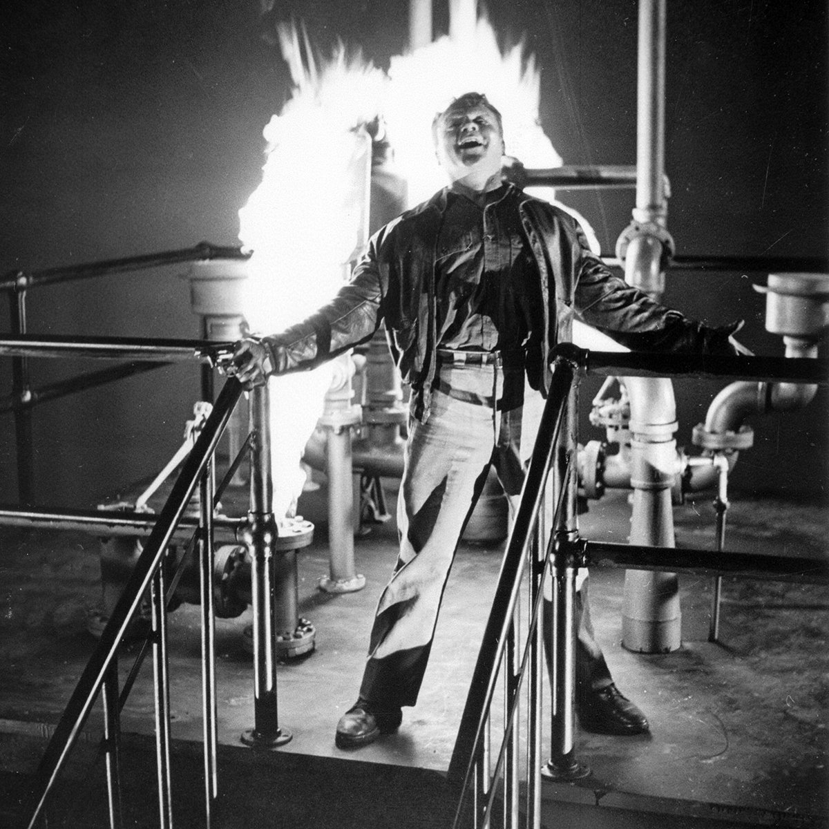 And it all comes down to James Cagney, whose fearless embodiment of megalomaniacally Cody Jarrett is a performance for the ages. Fitful and panicked, snarling and susceptible, running, jumping and squatting in one fluid movement: his dynamism is unparalleled. A gifted dancer (see his sprightly staircase descent in Yankee Doodle Dandy) and the son of an amateur boxer, Cagney never relinquished a physical grace, even in the most ungraceful of situations. He moves with a distinct rhythm, a bounce that is both pugnacious and refined. His relatively small frame (standing just 5’5”) and his advancing age (50 at the time of production) dither in the face of his voracious intensity. He is a fast-talking turbine, barking orders and issuing threats and snappy one-liners with equal aplomb, speaking in third-person like the emphatic narrator of his own lawless chronicle. If White Heat has any faults, it would be in the way Cagney’s absence (as when Cody is away in prison) drains the picture of its erstwhile energy. Crime may not ultimately pay for cracked Cody Jarrett, but when he reaches the pinnacle of an incendiary refinery, making it, as he famously proclaims to his dearly departed mother, to the “top of the world!,” he at least finds release and perhaps even peace. It’s a fiery denouement befitting this explosive personality. Just don’t forget, he’s the bad guy.