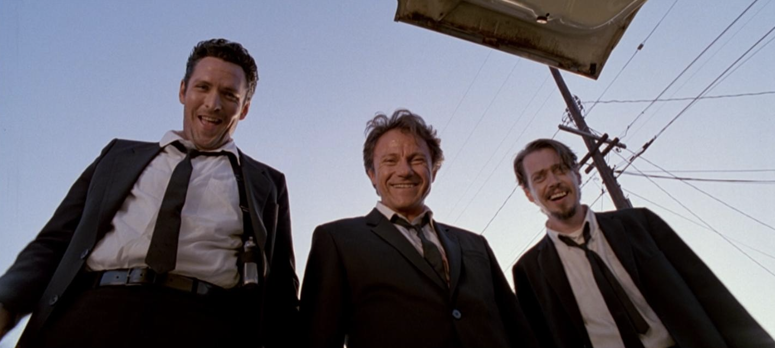 From a visual standpoint, Reservoir Dogs bears some of the inventiveness that would define Tarantino’s style, despite its low budget. There’s the first appearance of the now-ubiquitous “trunk shot,” which Tarantino would use again in Pulp Fiction, Jackie Brown, Kill Bill and Death Proof. There’s a great long-take in which the camera follows Mr. Blonde as he leaves the warehouse (music cuts out), grabs a can of gasoline from the trunk and returns to the warehouse (music returns). My favorite shot comes around the mid-way mark. Mr. White and Mr. Pink are having it out, guns pointed, when the camera slowly pans back to reveal Mr. Blonde, sipping his drink like a total badass. It separates Mr. Blonde from the crew and presents him as an other — someone to be feared. And don’t tell me he doesn’t come off as menacing and cool when he says, “Are you gonna bark all day, little doggie, or are you gonna bite?”