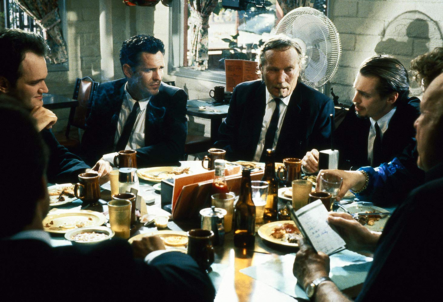 Tarantino humanizes these awful, racist, sociopathic guys. They rob and murder, but they get down to “The Night the Lights Went Down in Georgia” and watch The Lost Boys. They stop for a soda after shooting up a bunch of people at a jewelry shop (Mr. Blonde). Tarantino isn’t showing John McClane climbing through an air duct to take down a bunch of terrorists; his focus is on the criminals. These guys are villains, but the real bad guy is the one who ratted them all out. Viewers take this sort of thing for granted now, but you generally didn’t see thugs talking pop songs before Reservoir Dogs. To see bad guys as more than stock characters, with insecurities and ho-hum interests, was novel. Tarantino acquaints viewers with these guys at the start of the film as they talk about mundane stuff like tipping and Madonna. When experiencing Reservoir Dogs for the first time, it’s not obvious that these guys are about to pull a job. They could be insurance salesmen for all anyone knows, but this banter brings them to life as characters, and when shit goes down, there’s reason to care.