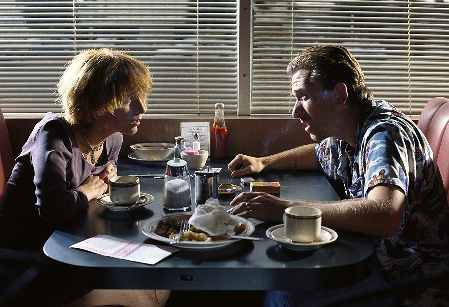 By plotting the film out in this way, Tarantino allows for more focus on character. There’s a big overall story here, but it’s not that compelling on its own. Who knows if it’d work in a standard linear structure.. What is interesting are the glimpses into these misfits’ lives. To think that a man on the run from a crime boss would risk his life and return to his apartment just to retrieve a watch that Christopher Walken had stuck up his ass. But it’s Butch’s one tangible connection to his father, a memento he isn’t willing to leave behind, no matter how heavy the stakes. Sure, he pals around with criminals and beats a boxer to death, but he’s got principles. Butch is revealed to have a soft side when he’s in conversation with his lover, Fabienne. Seemingly innocuous conversations about pancakes and pot bellies don’t move the plot forward or reveal any juicy info that will pay off later, but they show another side to Butch. The movie dares to humanize thugs and killers, and it succeeds. Tarantino isn’t asking the audience to approve of the vile deeds, but he does make one root for the characters in spite of their failings.