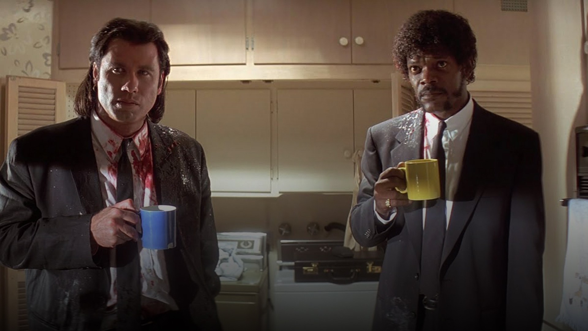 Pulp Fiction, like Reservoir Dogs, plays with time, but it takes the technique to a whole other level. Rather than just presenting mere flashbacks, the film features several interwoven stories. For example, the first scene shows the Bonnie & Clyde-lite duo of Pumpkin and Honey Bunny discussing the possibility of robbing the diner they’re seated in. It’s revealed in the epilogue that hitmen Jules and Vincent are actually seated in the same diner. Tarantino likened this narrative structure to a novel, in which a writer can jump backward and forward in time, offering new information, building suspense. It has the effect of changing how characters are seen, and who to root for, depending on which part of the movie you’re watching. In the first major part of Pulp Fiction, “Vincent Vega and Marsellus Wallace’s Wife,” Vincent is essentially the protagonist. He’s a guy who desperately doesn’t want to mess up his “date” with Mia. He dances with her, talks five-dollar milkshakes and blows her a tender kiss after their insane night together. But in the segment “The Gold Watch,” boxer Butch Coolidge assumes the role of the protagonist. He’s on a mission to retrieve his father’s watch, return to his sweet girlfriend Fabienne and then hit the road. Vincent makes an appearance in this segment, but he’s not a hero, but rather a villain to the new hero, Butch. It’s all interconnected, but each story stands on its own — there’s a problem and the protagonist finds a solution, whether it be Butch retrieving his dad’s watch or Jules and Vincent cleaning their car with the assistance of The Wolf, played with finesse by Reservoir Dogs alum Harvey Keitel.