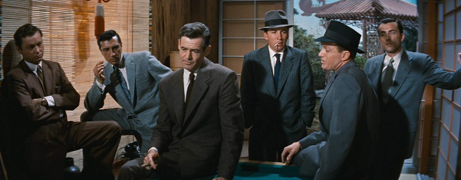 Fuller made great use of the opportunity 20th Century Fox gave him with House of Bamboo, starting with the cinematography. The movie was the first to be actually shot on location in Japan after World War II, and the director’s use of CinemaScope widescreen technology and Technicolor makes every single scene come alive with vibrant energy, as if they are stolen moments from a travelogue. This gets lost somewhat, as future airings of the movie on television were done in a pan-and-scan print style that takes away from the majestic footage. (Side note: DeForest Kelley, of Star Trek fame, is in this motion picture, but because of these earlier prints, many believed his role came towards the end of the film. It wasn’t until Fox reinstituted the original CinemaScope print in the 1990s that audiences saw he was in the film all along — he had just been cropped out of frame in the earlier versions.)