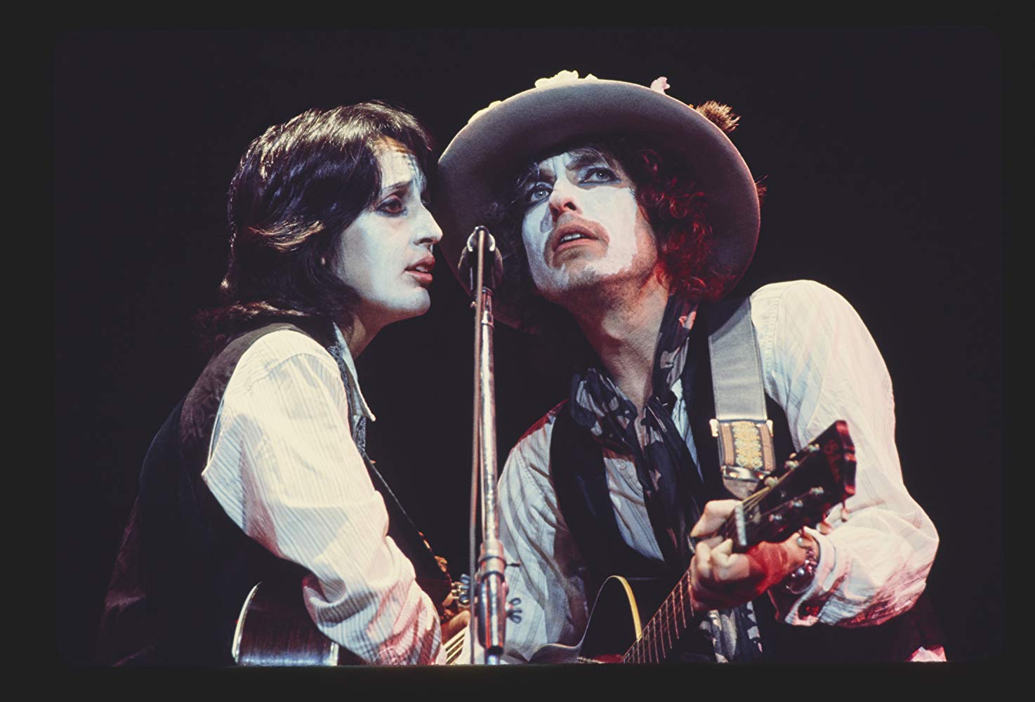 Dylan’s traveling circus, his 1975 response to the conclusion of a larger-scale stadium tour with The Band, featured performers Joan Baez, Allen Ginsberg, Joni Mitchell, Roger McGuinn, Ronee Blakley, Ramblin’ Jack Elliott, Bobby Neuwirth, Scarlet Rivera, Mick Ronson and others. Following the release of Blood on the Tracks, the shows highlighted electrifying reworkings of Dylan staples as well as fierce and fresh previews of songs that would fill out the Jacques Levy collaboration “Desire,” which was released between the autumn and spring legs of Rolling Thunder. The scope of the experiment boggles the mind of any Dylanologist; Scorsese’s movie leaves out Muhammad Ali, Coretta Scott King, Harry Dean Stanton, Dennis Hopper, Ringo Starr, Stevie Wonder and Dr. John. Sara Dylan is also omitted.