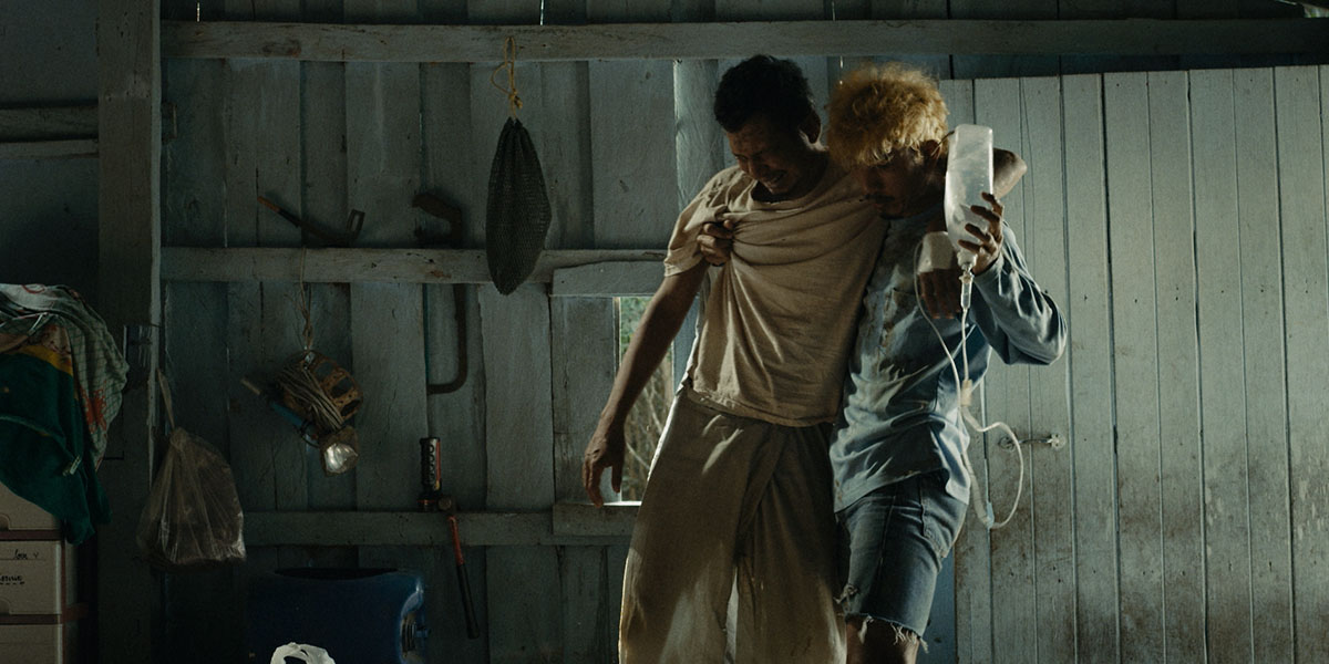 Manta Ray opens at night, and the geography is deliberately vague. The camera follows an armed man roaming the woods wrapped in Christmas lights, while others gather around what seems to be either a corpse or just an unconscious person lying in the mud. The unsettling score by Mathieu Gabry and Christine Ott adds to the ambiguity of the opening scene, creating a sense of discomfort that verges on anxiety. The coastal village where the story unfolds has no name and could be anywhere in Thailand. Also unnamed is the protagonist, a young fisherman (Wanlop Rungkumjad) who rescues the wounded man (Aphisit Hama) and brings him home. The cruel political circumstances strip the Rohingyas of their voices, so this man is mute and nameless. But the fisherman calls him Thongchai, and provides a new identity and home.