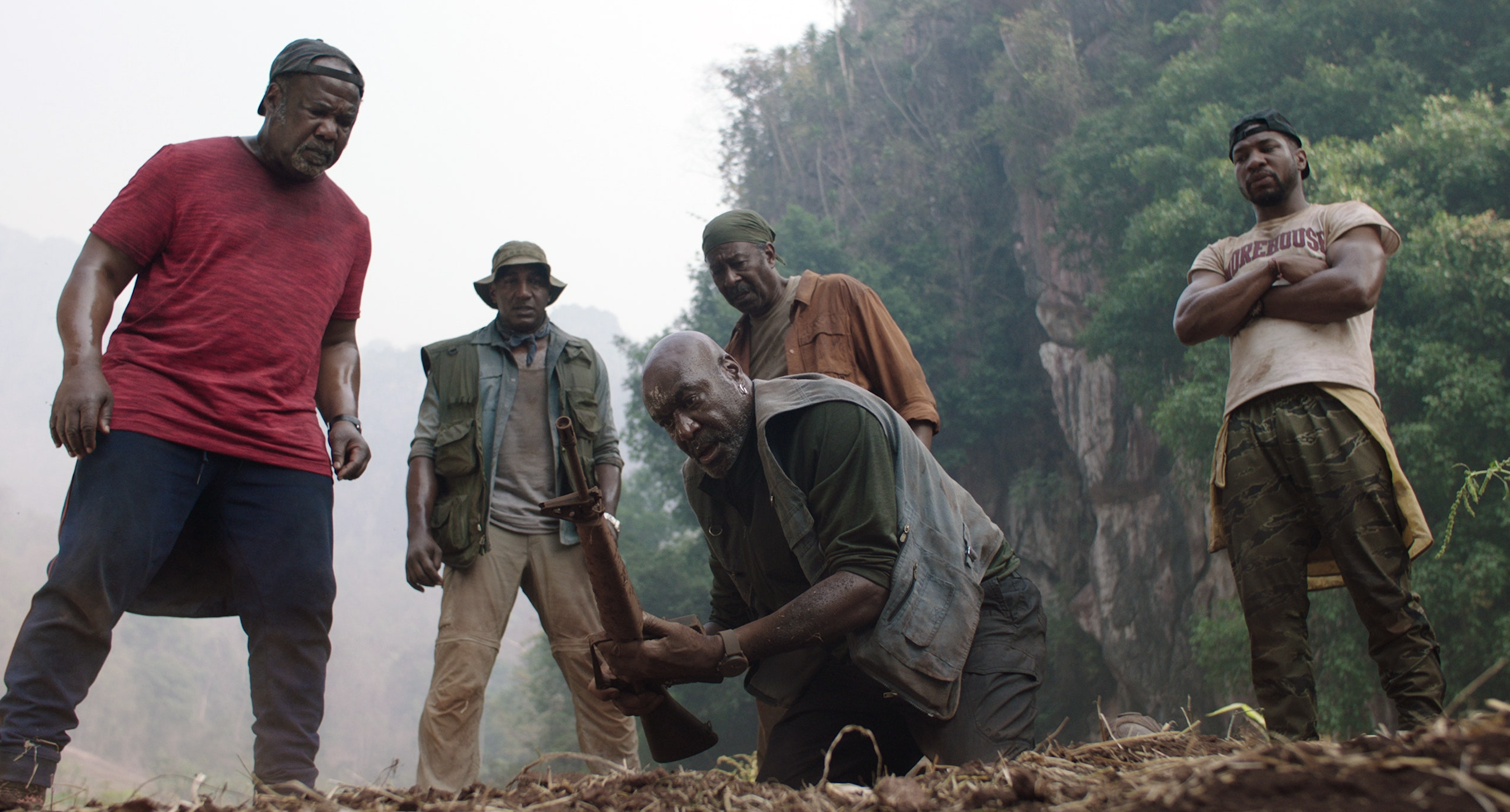One of the most effective storytelling strategies in Spike Lee’s Da 5 Bloods is the application of the simple and elegant dichotomy. The filmmaker has long enjoyed exploring dualities, as the apparent bifurcation of moral choice-making appeals to our human nature: black and white, yin and yang, stop and go, yes and no. It is, however, the complementarity and interconnectedness of seemingly polar opposites that moves toward the complexity and richness that cannot be found in a heads/tails outcome. Four Vietnam veterans return to the place where the fifth member of their group was killed in action. Is the principal purpose of their pilgrimage to recover the remains of their fallen friend or is it to locate millions of dollars in gold bars they buried decades ago?