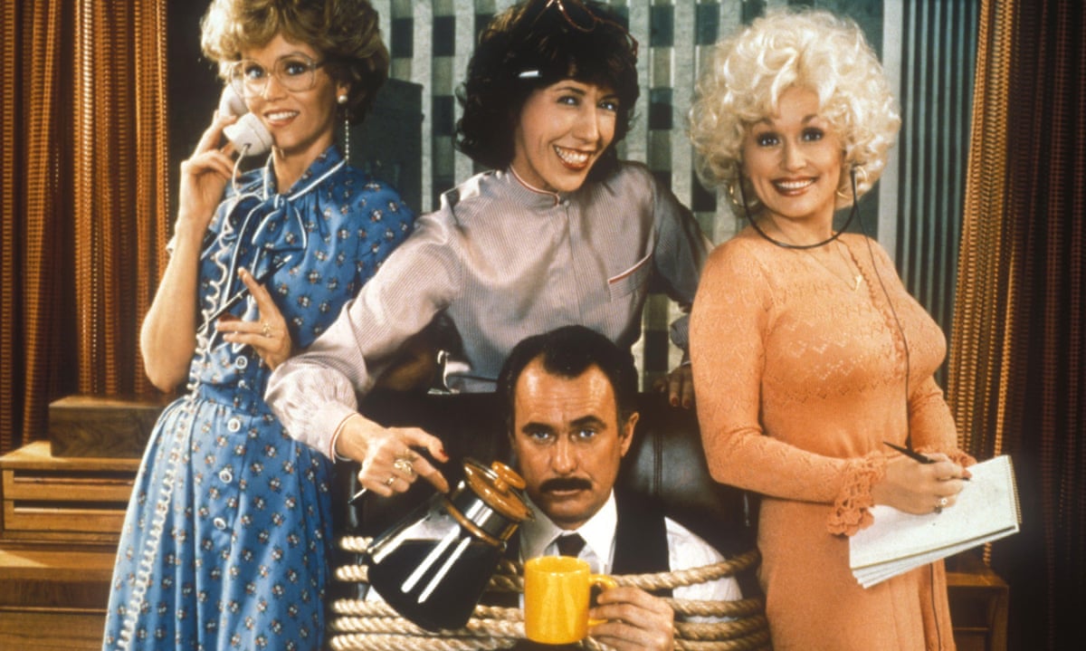 9 to 5 (1980) explores the new parameters of workplace politics on a comic scale, but it has its own insights into the ways corporate America was forced to diversify, and the birth pangs of the nascent career woman. Its three female protagonists constitute a continuum of liberation: Judy Bernly (Jane Fonda) is a recent divorcee who is entering the workforce for the first time as an admin assistant at Consolidated, and retains a deference for authority. Violet Newstead (Lily Tomlin) is a widow with four children whose work at Consolidated is not being appreciated; she is defiant, but weighed down by her obligations. Doralee Rhodes (Dolly Parton) is a married secretary who is clinging to her career foothold at Consolidated, aware of how quickly she could be plunged back into the ranks of the economic underclass — like the anonymous cleaners who haunt the edges of the frame. All three women align upon a shared insubordination in the face of their “sexist egotistical lying hypocritical bigot” boss, Frank Hart Jr. (Dabney Coleman), who preaches a form of “teamwork” which redounds to his own glory.
