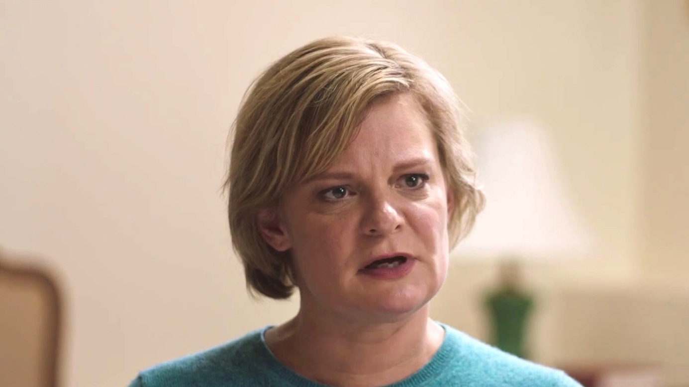 Particularly when individuals either find themselves or voluntarily choose to be separate from the rest of the family, character purposes and objectives present themselves. As in Mass, these purposes and objectives offer the key to achieving clarity. At one stage, Brigid’s sister Amy (Amy Schumer) locks herself in the bathroom for a while, struggling with both her inflammatory bowel disease (that could have life-threatening complications) and her mental health (having just broken up with her girlfriend, who she phones shortly after this lengthy visit to the toilet). At another, the mother (Deirdre, played by Jayne Houdyshell) has a discrete cry at the dinner table, long after the Thanksgiving leftovers and the plates have been cleared away and when she is alone. At another, Deirdre’s isolation is presented as absence, as her daughters joke about her recent letters/emails in the dining room while she is elsewhere, which their father puts an end to by saying that they should spend more time writing back. At another, Grandma (“Momo,” June Squibb) gets lost, which panics the rest of the family because she suffers from Alzheimer’s disease.