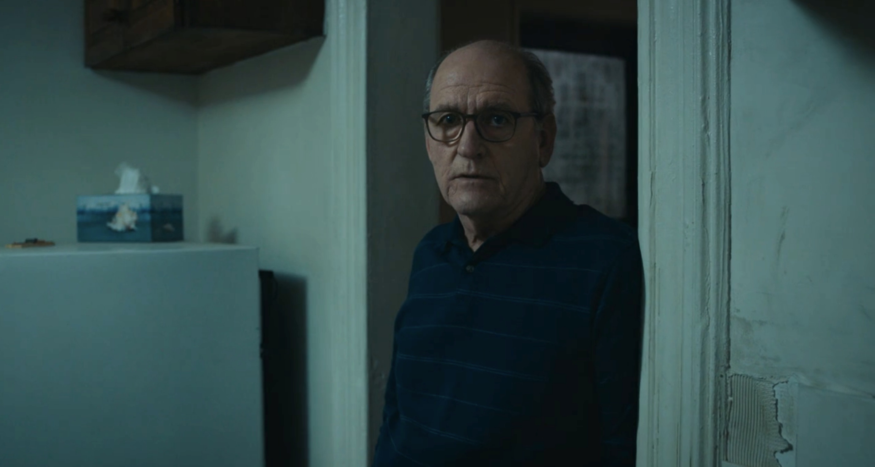 But the most frequent moments of character isolation are the father’s (Richard Jenkins as Erik), who — as it’s revealed in the third act — has gathered the family for more than just eating and drinking. The man tells his shocked, disappointed daughters that he has lost his teaching job after an affair with a colleague. Erik tells them to not worry, as he and their mother are working it out, even if they have taken a hit financially as a result of the job loss and therefore “sold the lake property.” This revelation is teased early on in The Humans, when Karam provides an intense close-up of a nervous Erik looking out of a window. The character zones out but snaps back into reality when Amy enters the room and startles him. There is another scene where Erik himself must regain composure in the bathroom, his head in his hands and his fast breathing audible. There is yet another where Erik wanders upstairs alone, claiming to be putting his head out of the window to get a phone signal and check an important sports score, the truth of which is left ambiguous. The attempts to find clarity in The Humans — for both the audience and the characters — are in the hands of the broken Blake family patriarch, who hopes for unity and harmony despite what he must tell his daughters he has done. Erik’s mistake anchors the narrative, giving the film shape and structure which are transparently clear to the viewer as soon as Jenkins’ character confesses. Like in Mass, the past holds together the present tense of The Humans, determining its foundations and its makeup, while simultaneously being in control of how this present will evolve into a future.