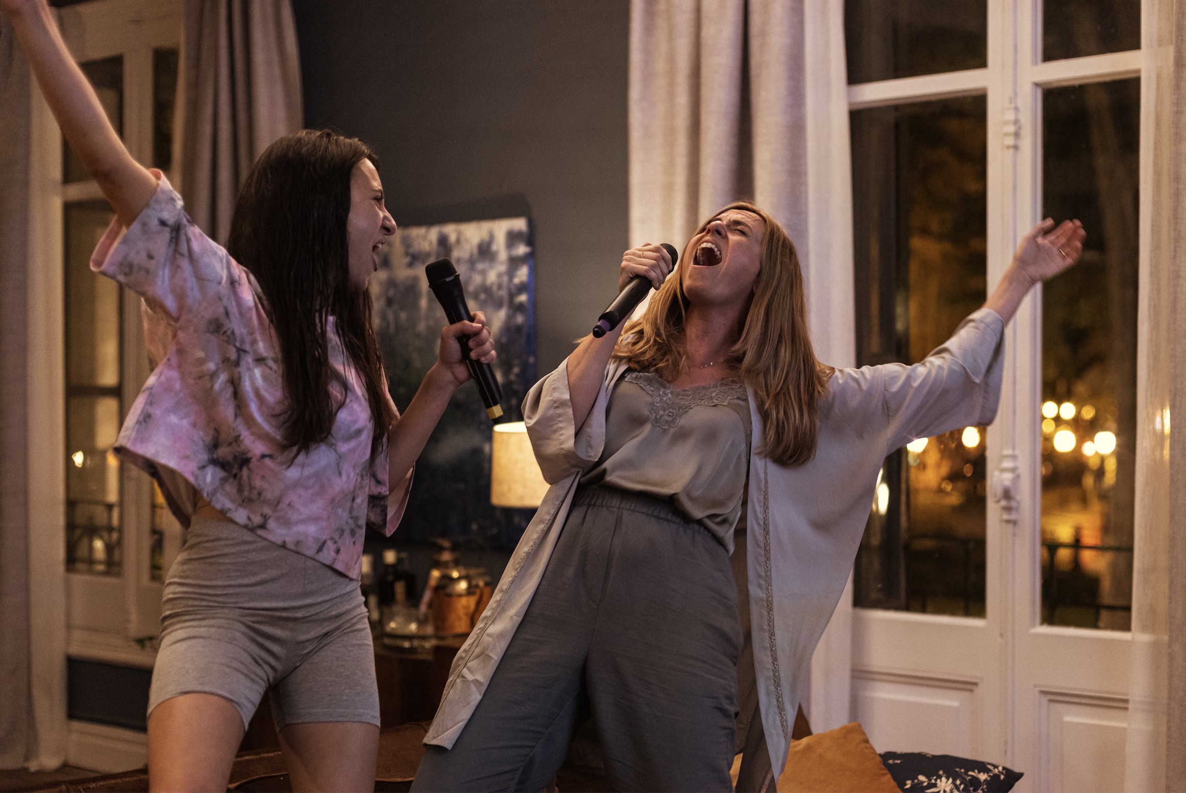 - “Indestructible” by Robyn (00:29): Malen plays music at her home. She grabs two microphones and asks Leire to sing with her. The mother and daughter perform in front of a large karaoke screen.