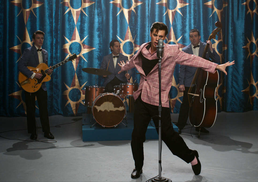 In a film about arguably the world’s most famous singer, music is central, and Luhrmann and music director Elliott Wheeler create a world where blues and gospel provide a tonal backdrop for the music that ultimately comes out of Elvis. The blues hollers of Arthur “Big Boy” Crudup and “Big Mama” Thornton, along with the soaring gospels of Mahalia Jackson and Sister Rosetta Tharpe, at times blend with the intense modern-day sounds of rapper Eminem and others as Elvis shakes, rattles and rolls his way from Tupelo and Memphis fairgrounds to the Louisiana Hayride in Shreveport to neon-lit Las Vegas.