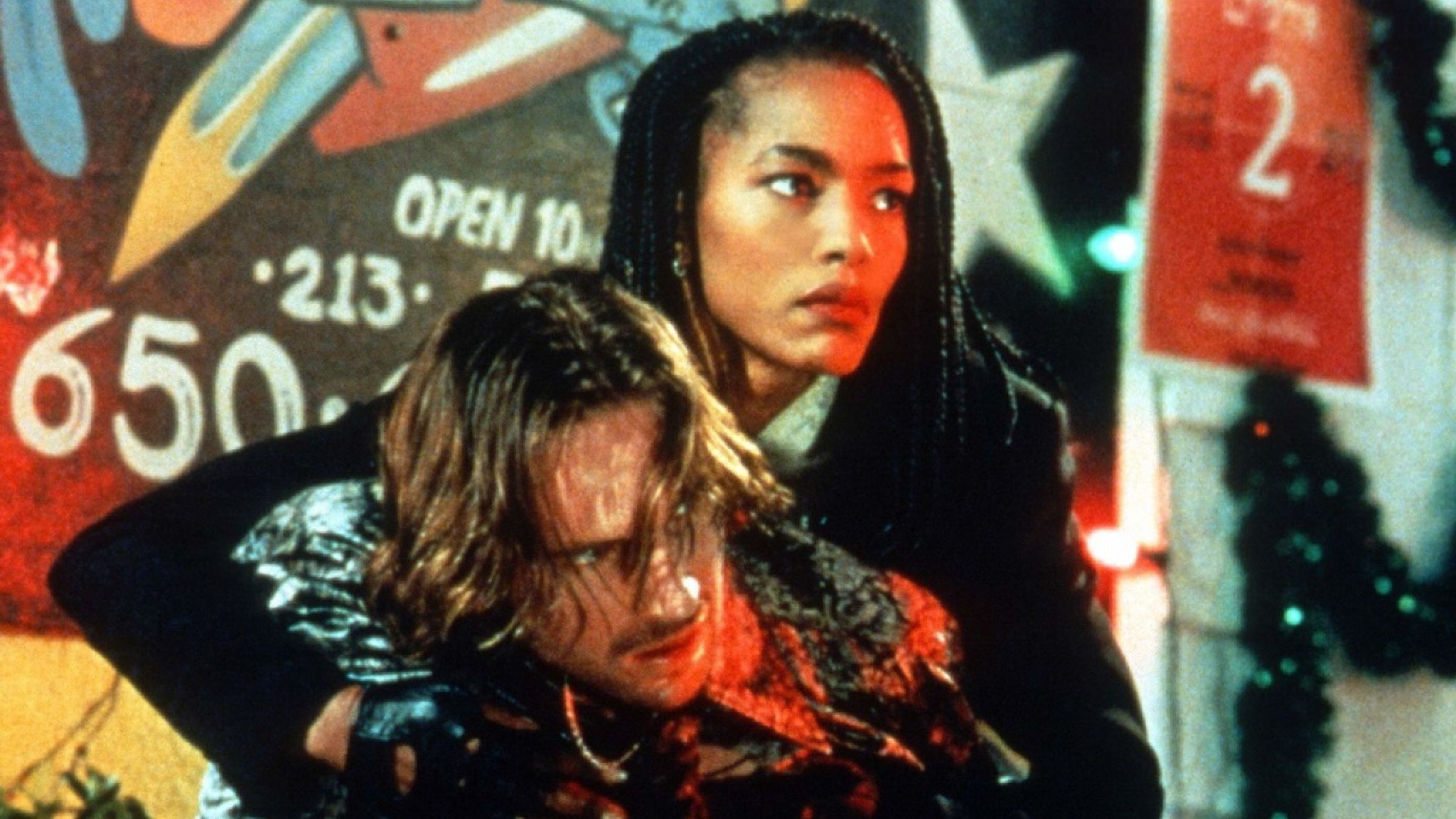 In the absence of a functioning state, personal protection becomes a matter of engaging with mutual aid. If it is understood that law enforcement is pursuing its own agenda, then ordinary citizens are drafted into what amounts to remedial gig work. When Lenny witnesses a murder on a SQUID disc, he must reckon with the power that the technology confers. Strange Days begins as an exegesis on emerging technology, then becomes a neo-noir; a shadow procedural in which the washed-up flatfoot must step into “the dark end of street” to crack the case. Lenny is pulled between the nihilism of louche PI Max (Tom Sizemore) and the compassion of hard-working chauffeur Mace (Angela Bassett). Max avers that “Everything’s already been done. Every kind of music’s been tried, every government.” He speaks to the feeling of despair that all the old idols have been discredited, and all that remains are used memories and dissipation. Mace is a galvanizing force, as she tries to draw Lenny out of the stupor induced by Faith’s memory into a confrontation with the real, to drag him from voyeurism into action. When the investigation leads Lenny to the SQUID clip which proves that the LAPD murdered Jeriko, it is Mace who tells him that “It’s real time. Time to get real,” that “Maybe it’s time for a war,” that confronting the big beast on its own terms is the only way of breaking its hegemony.