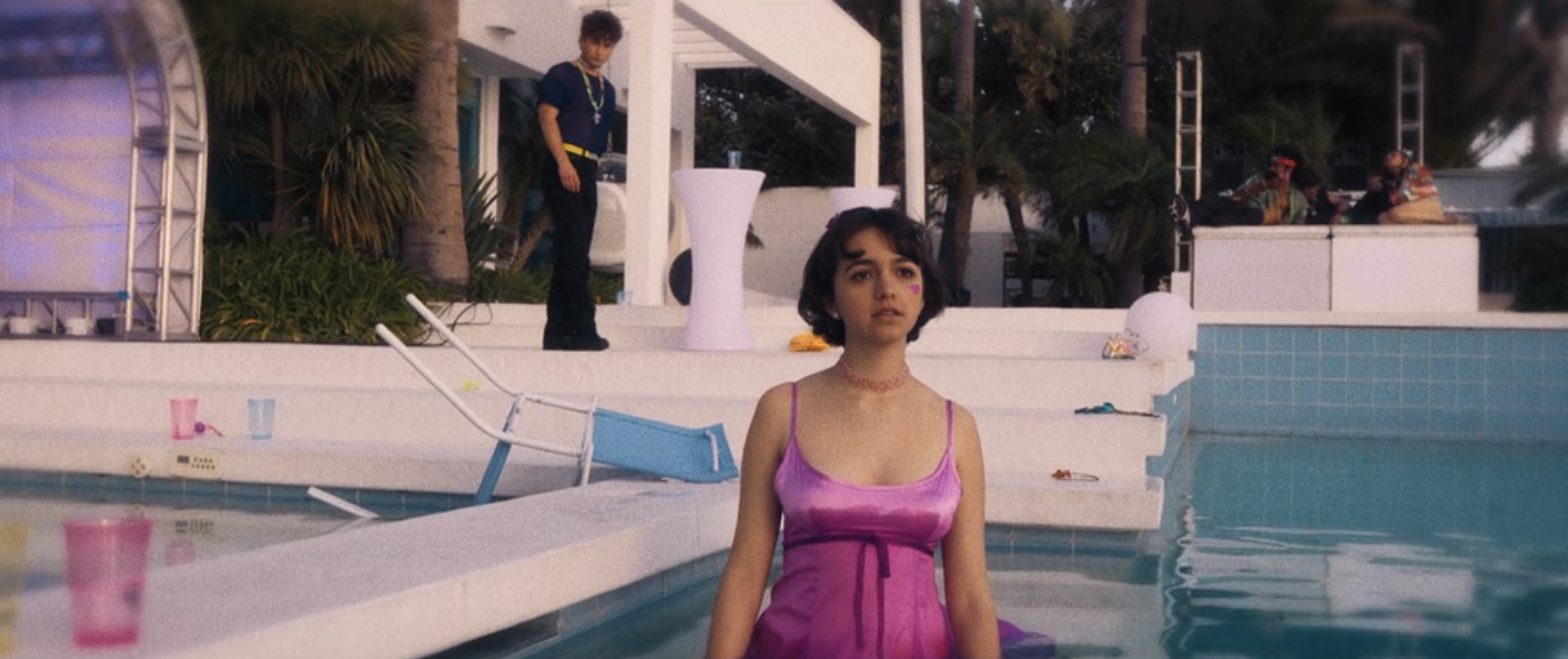 - “Love Affair” by Trans Am (00:26): The American Gigolo soundtrack song scores a flashback sequence. Lisa Beck (Taylor Blackwell) navigates a pool area. Young Julian stands behind her.