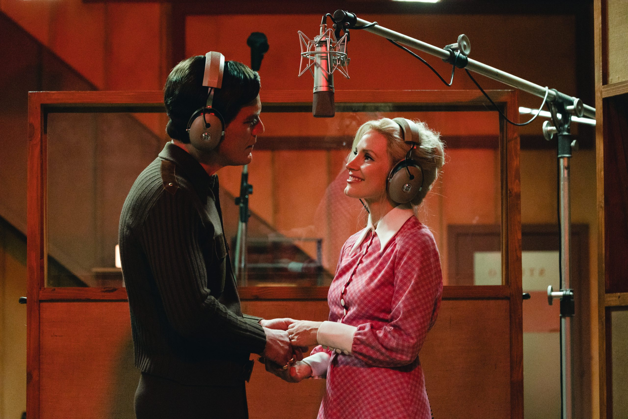 - “Two Story House” by George Jones and Tammy Wynette (00:21): The George & Tammy soundtrack song is performed during a studio session scene. The title characters record a new tune. George Richey watches from the deck area.