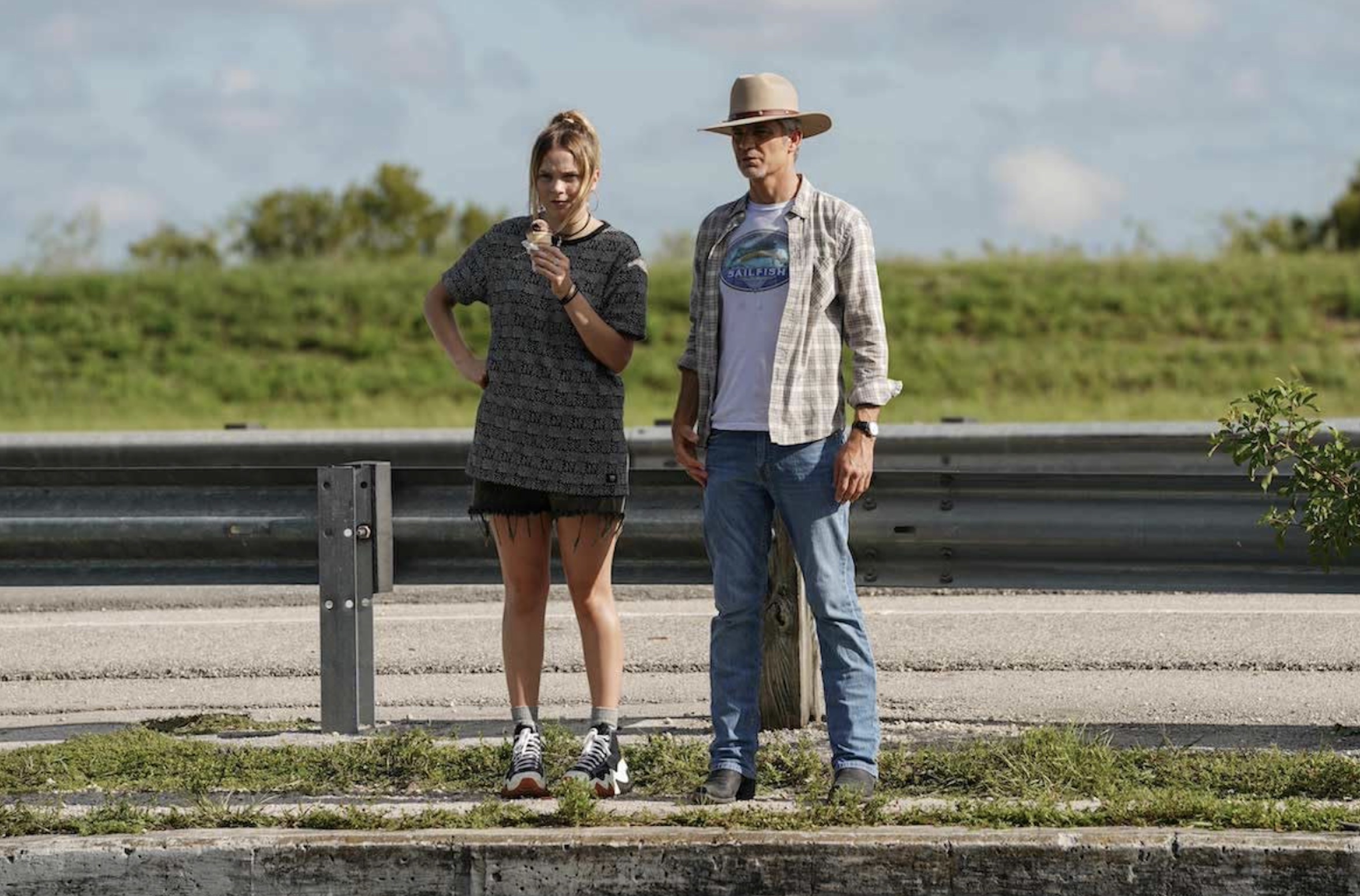 - “Don’t Overthink It” by Aaron Lee Tasman (00:00): The Justified: City Primeval soundtrack song plays during an exterior scene. Raylan talks to his daughter, Willa (Vivian Olyphant). The music continues during a car scene.