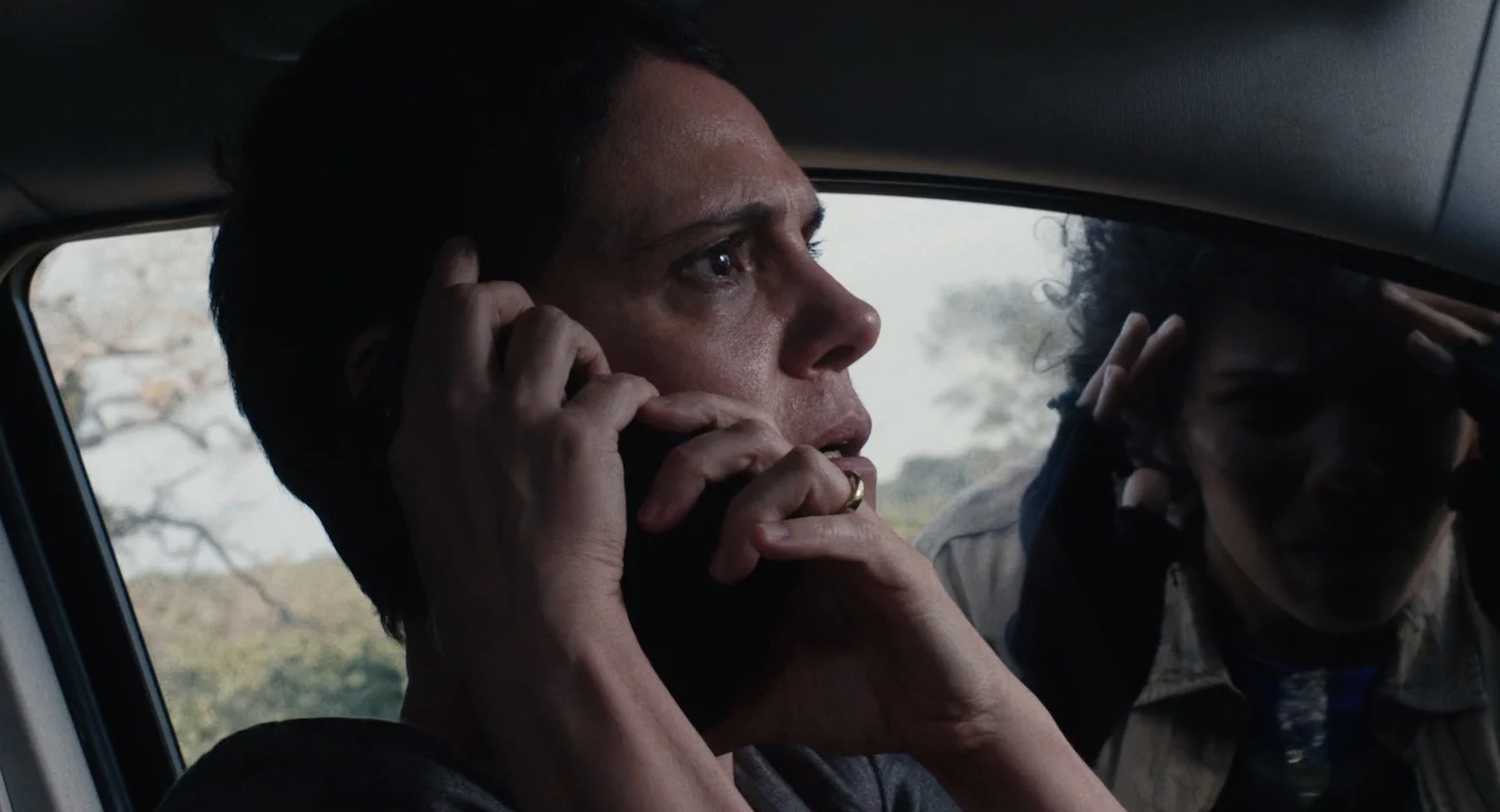 Tereza’s husband, Roberto (Tavinho Teixeria), persuades her to take a trip out to their ranch in the countryside, hoping that the change in scenery might do her some good. As the couple prepares to leave, Roberto proudly shows off the security upgrades he has made to their car: bullet-proof armor, blacked-out windows and a voice-recognition system which ensures that he and Tereza are the only people capable of operating the vehicle — so long as they can remember the activation phrase that Roberto has set for it, of course.