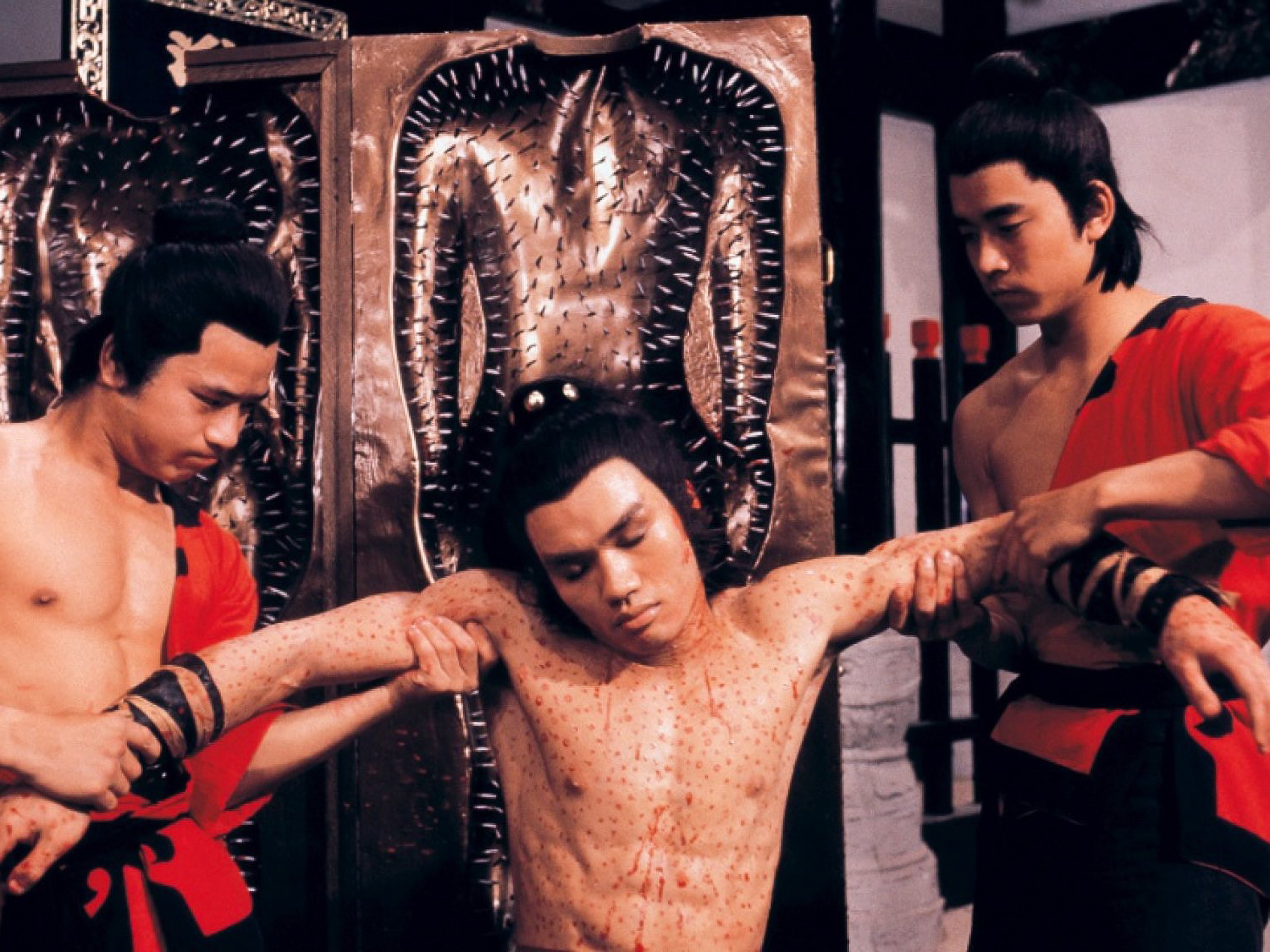 But amidst that interchangeability, the studio continually produced films of genuine artistry, genius and pure entertainment, courtesy of a talent pool which was able to rely on a continuous stream of work in which to hone their craft. By the late 1970s, Shaw Brothers had been the dominant studio in Hong Kong for at least a decade, though Golden Harvest (who had signed Bruce Lee) was starting to catch up. Chang was the star director, having gradually shifted from wuxia films (The One-Armed Swordsman, 1967) to the hand-on-hand bloodiness of kung fu from the early-to-mid-70s onwards, in accordance with prevailing audience tastes. The filmmaker was unrelentingly busy, directing as many as five or six productions a year (he clocked up almost 100 features during his career). By the late 70s, however, Chang’s star was being eclipsed by his former pupil Lau Kar-leung, who had begun his career as an action choreographer before breaking out into directing on his own.