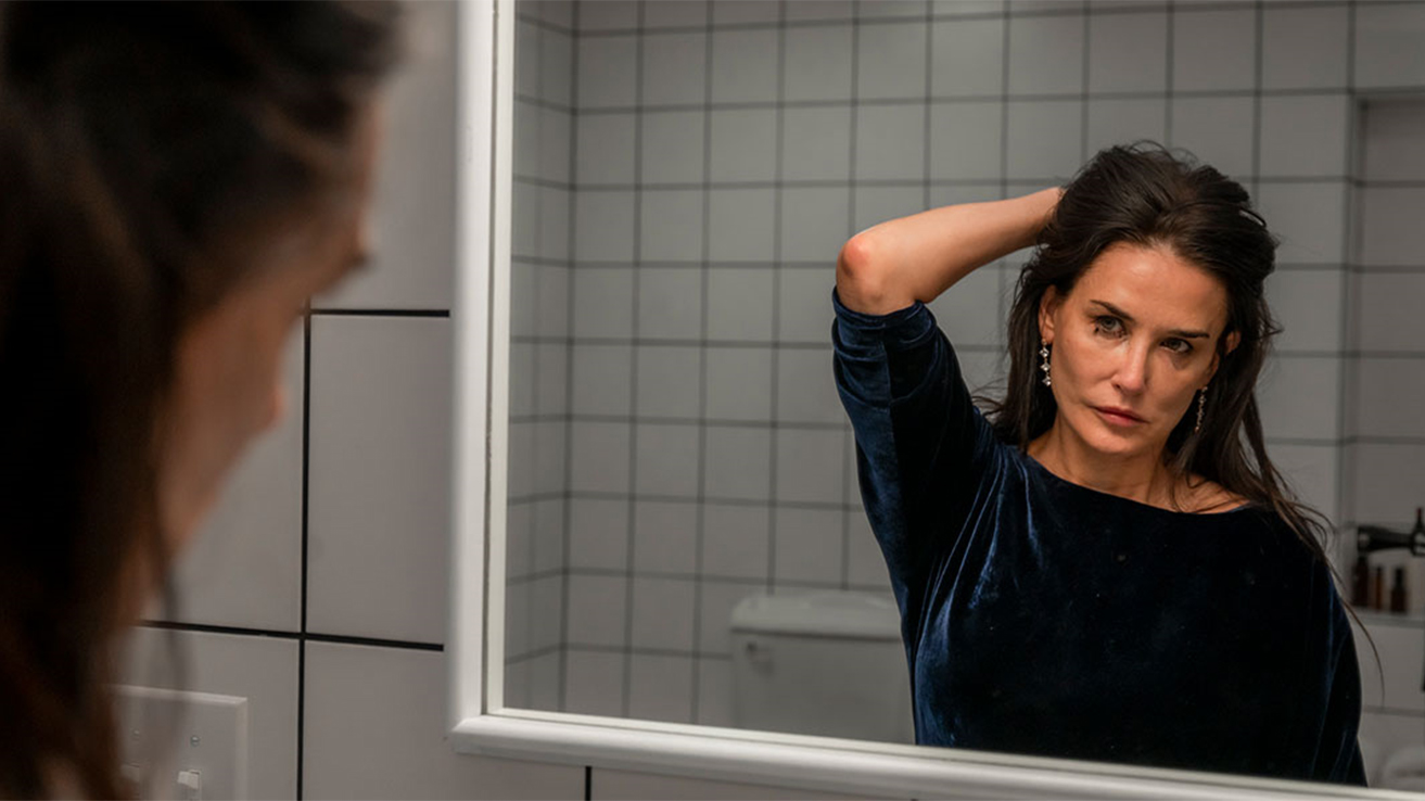 Warning signs emerge in The Substance’s first act. After an elegant, economical introduction to the waning celebrity of Elisabeth Sparkle (Demi Moore), the character appears in the present as the outgoing host of a morning workout show. It’s the kind of cultural marker that feels deliberately outdated — a suggestion of a woman who is no longer a celebrated actress, but rather a washed-up and largely forgotten industry figure. After being introduced to “The Substance” — an underground serum that will create a “younger, better” version of the user taking it — Elisabeth uses her new alter ego, Sue (Margaret Qualley), as a means to simply get her old job back, and become a younger version of the daytime TV host she already was.