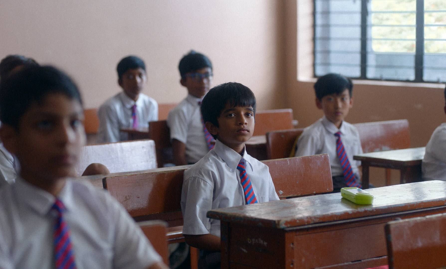 Aakash shares a tender, protective bond with his younger brother Adi (Anirudh P. Keserker), a relationship revealed through small but telling acts of care. The latter character empties the half-eaten food in his sibling’s tiffin before reaching home, sparing the younger one from their mother’s rebuke. When Adi receives chocolates from his teacher, he instinctively saves one for Aakash. Cashews, the protagonist’s favorite snack, emerge as a recurring motif of affection, as well as later becoming the cause of a fateful incident. Such everyday gestures of sharing that are mundane yet profound form the emotional bedrock of the film. Yet the world around the brothers is far less forgiving. Their school, ostensibly a sanctum of learning, doubles as a space of intimidation and fear. Aakash faces pressure from senior students who threaten him with blows unless he helps their younger siblings in exams. A volatile teacher shouts, hurls chalk and wields his cane without hesitation. At home, the expectation to excel academically looms just as heavily, as failure would bring its own punishment. Amid this atmosphere of endurance, both at school and at home, Adi’s tender gestures of care toward Aakash shine through, illuminating the tender, innocent bonds that gently hold the family together.